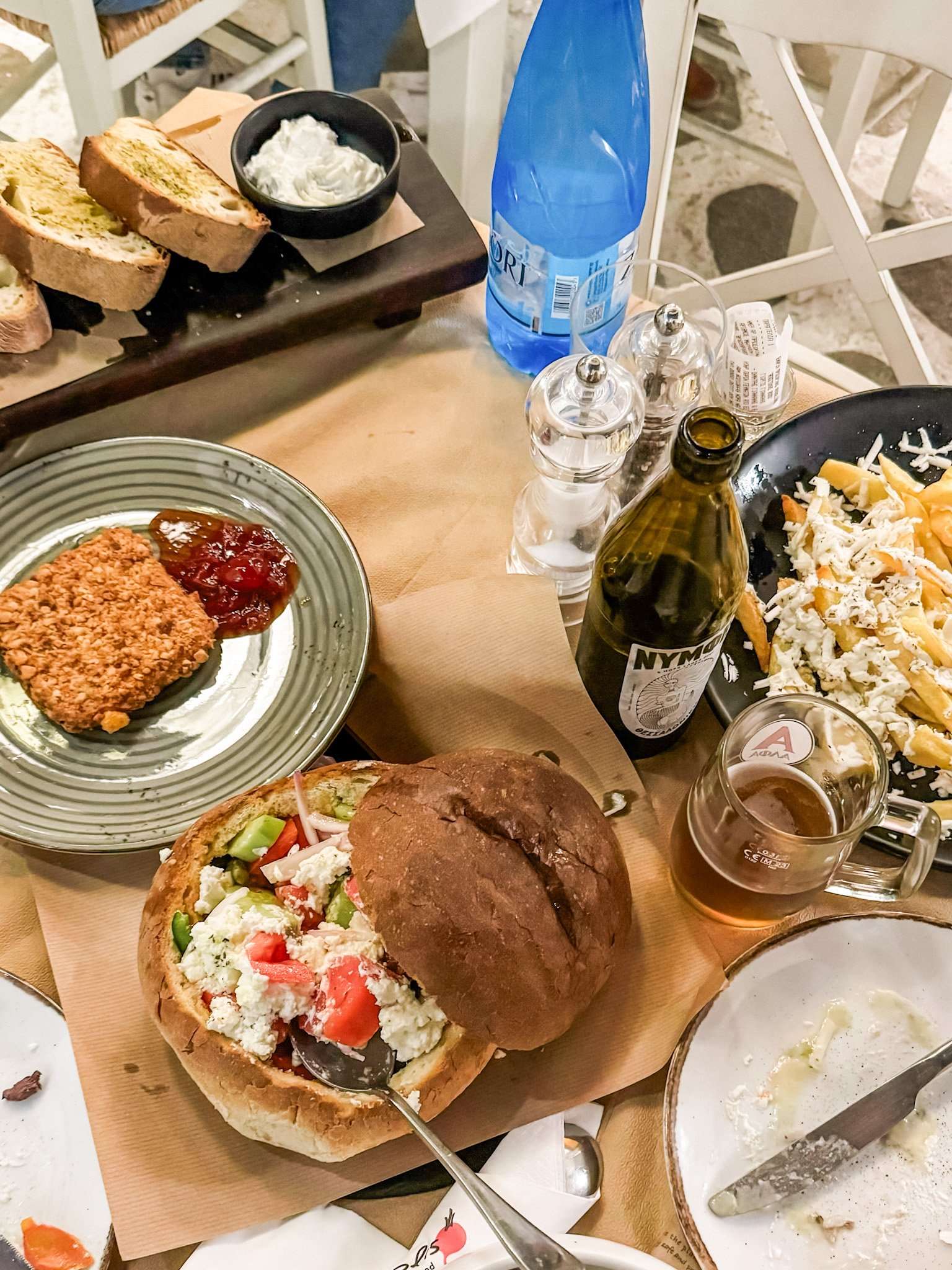 You just have to order the Greek salad. It’s served in cob bread so the olive oil, tomato and salad juices soak straight in. The Naxian loaded potatoes are another must. Fried potatoes topped with grated Naxian graviera. You’ll notice a theme here. The Naxian cheese is really good.